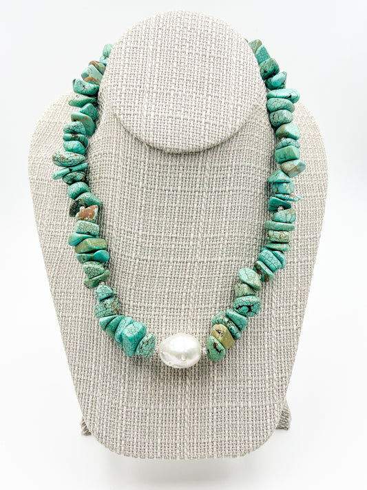 Turquoise Statement Large Pebble Pearl Earring
