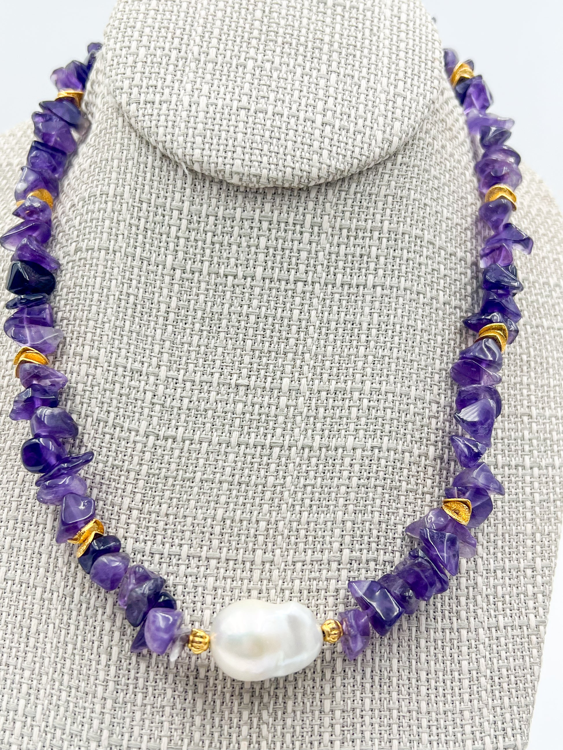 Amethyst & Genuine Freshwater Baroque Pearl Necklace