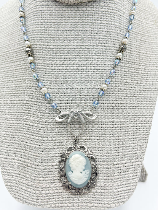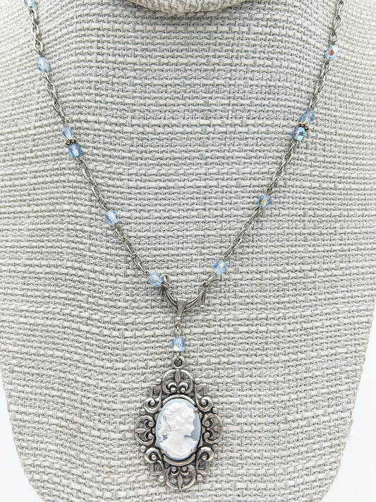 Blue Mini Cameo Earrings - Ornate Silver Setting