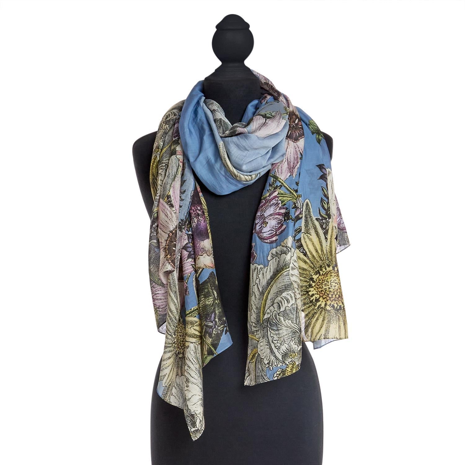 This elegant accessory from One Hundred Stars is essential for year-round wear. Crafted from a blend of 50% modal and 50% viscose, it offers a silk-like softness and a lightweight feel. The Daisy Cornflower Blue print enhances its refined appeal, while its generous dimensions (40" W x 78" L) allow it to be styled as a shawl, sarong, or scarf. Please note that slight variations in size may occur due to its handmade nature. For care, hand wash in cold water, iron on low, and avoid tumble drying.