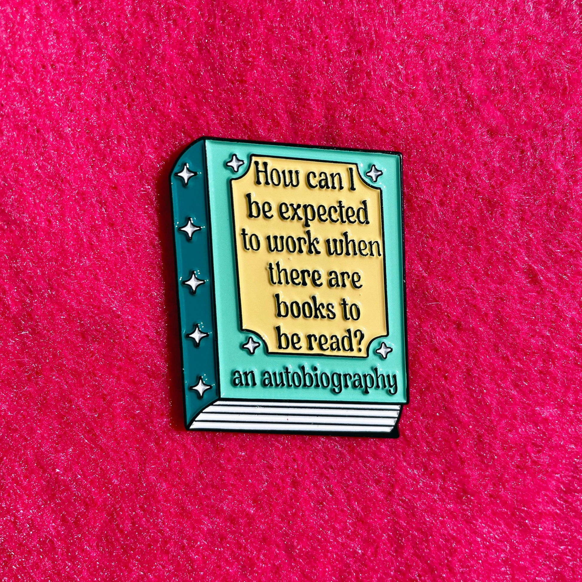 "The Bookish Struggle" Enamel Pin captures the timeless conflict between professional duties and the magnetic pull of literature. Featuring the witty phrase, "How can I be expected to work when there are books to be read?" this pin is an essential emblem for discerning readers. It subtly infuses your attire or accessories with a refined nod to literary passion. Celebrate the enduring charm of the written word and proudly display your devotion with this elegant 1.3-inch enamel pin, perfect for those who prioritize stories over tasks.